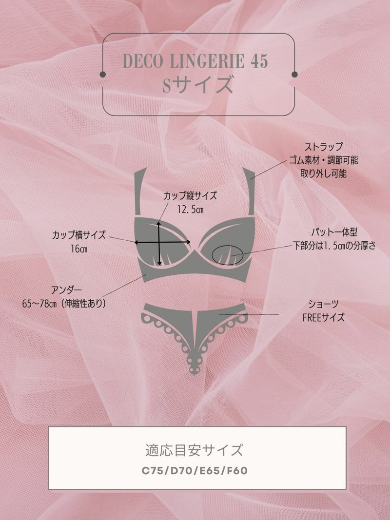 3. [DecoLingerie/デコランジェリー] [勝負下着] 高級 ベルベットリボン チュールフリル ビジュー ガーリー ランジェリー 4点セット[ブラ/Tバックショーツ/ウエストフリル/カフス]