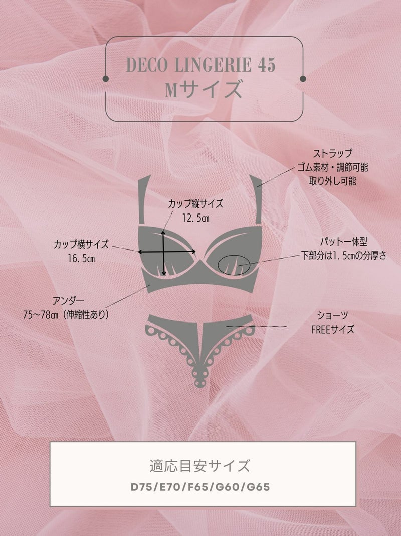 3. [DecoLingerie/デコランジェリー] [勝負下着] 高級 ベルベットリボン チュールフリル ビジュー ガーリー ランジェリー 4点セット[ブラ/Tバックショーツ/ウエストフリル/カフス]