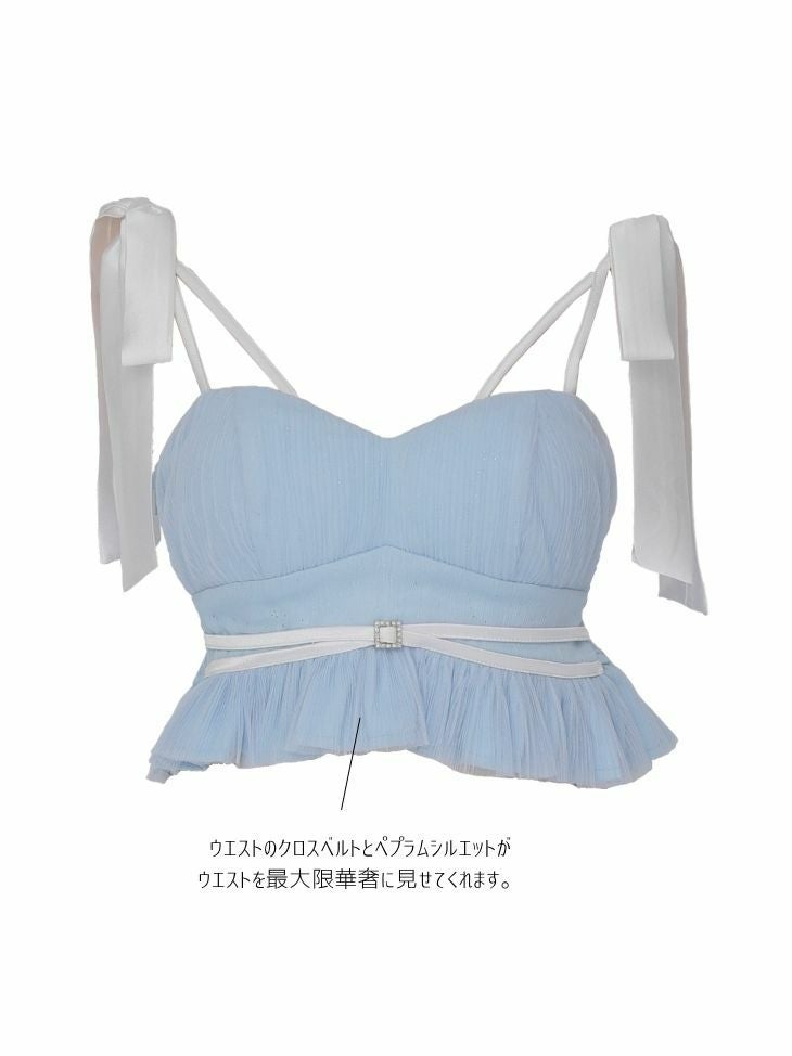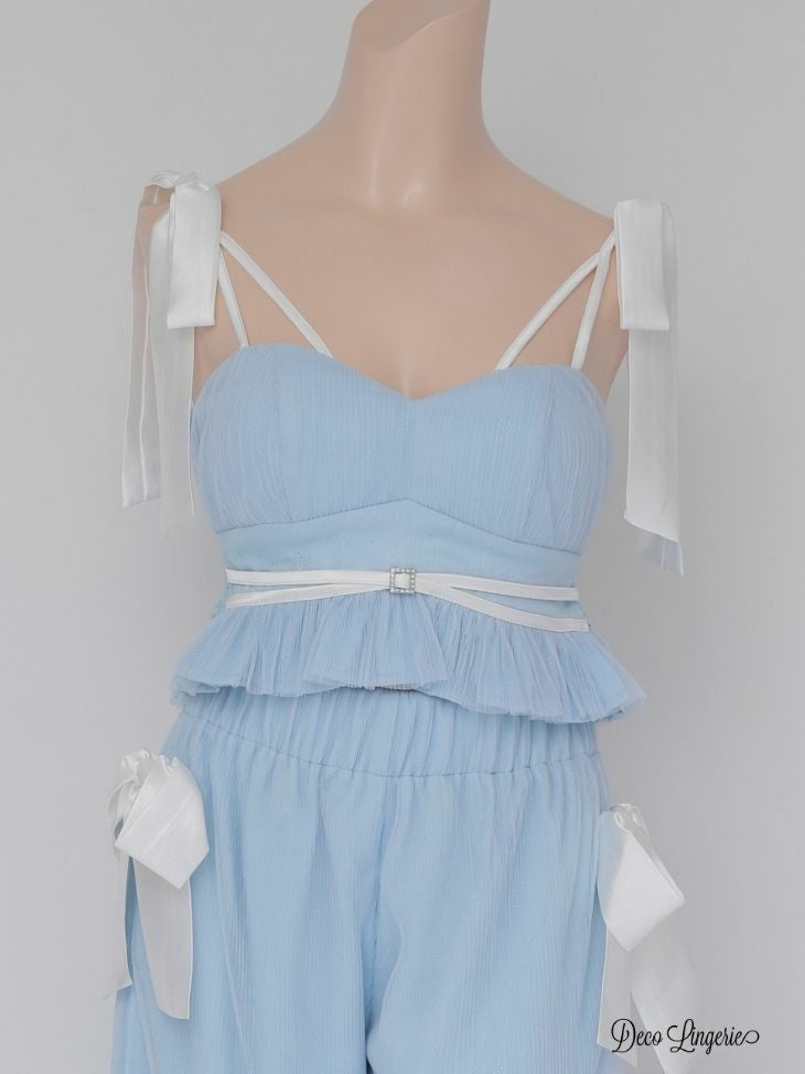 着るだけで心ときめく♡ [DecoLingerie/デコランジェリー] [ルームウェア] 高級 フリル キャミソール ラメ ビッグリボン ルームウェア 2点セット[キャミソール/ボトム]