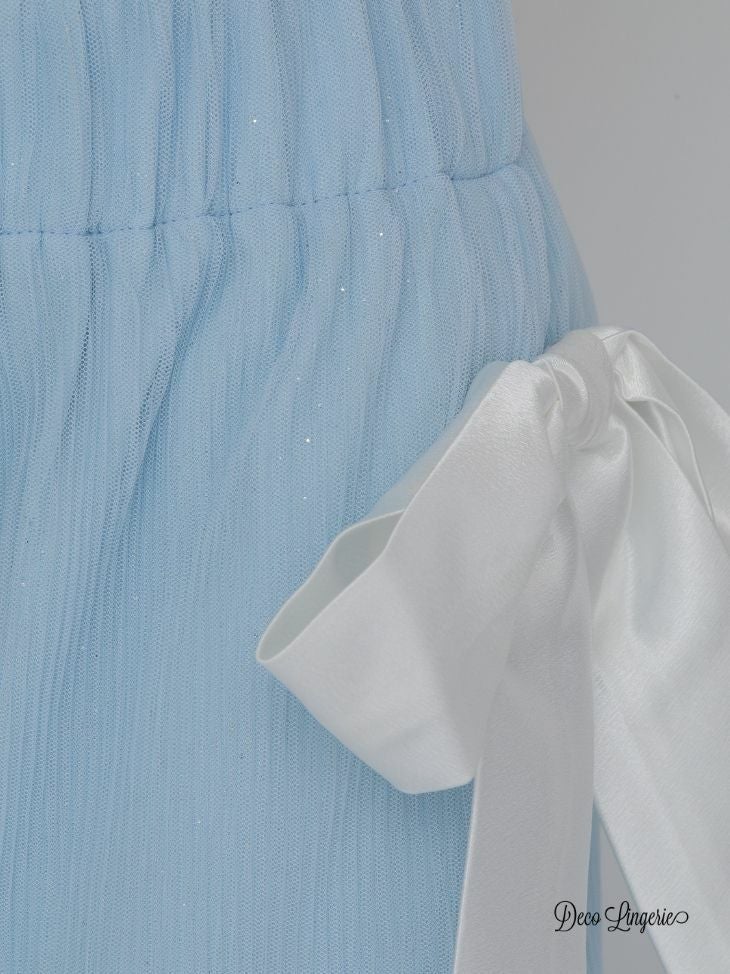 3. [DecoLingerie/デコランジェリー] [ルームウェア] 高級 フリル キャミソール ラメ ビッグリボン ルームウェア 2点セット[キャミソール/ボトム]