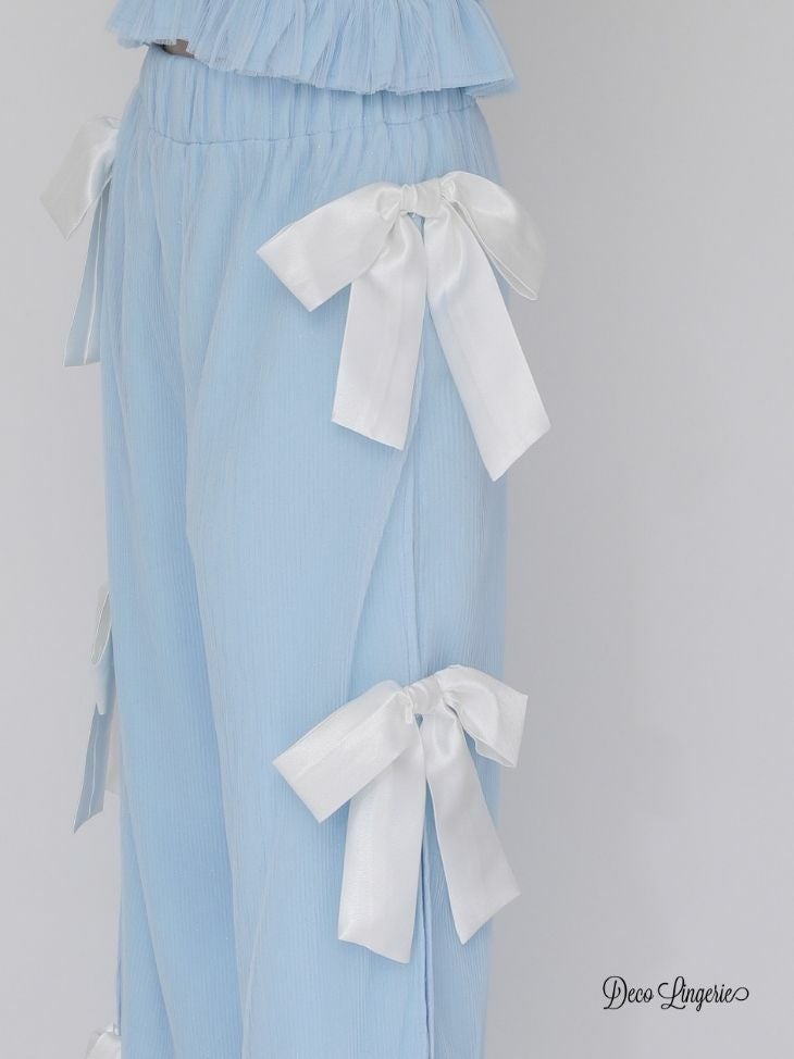 可愛さも動きやすさも抜かりのない1着♡ [DecoLingerie/デコランジェリー] [ルームウェア] 高級 フリル キャミソール ラメ ビッグリボン ルームウェア 2点セット[キャミソール/ボトム]