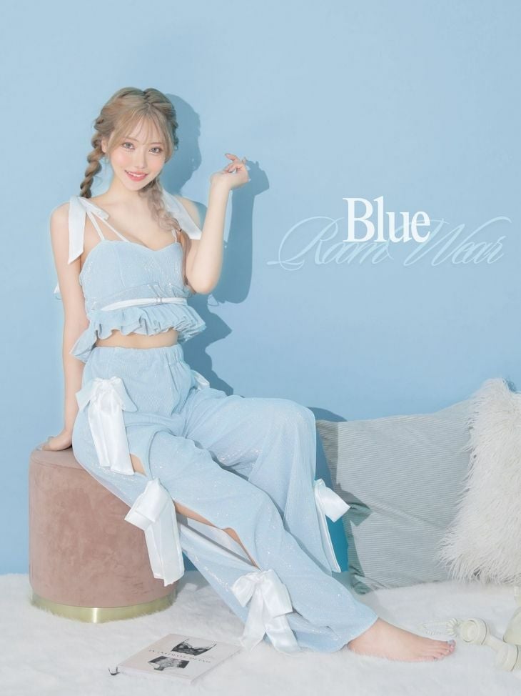 ルームウェアもとびきり可愛く♡ [DecoLingerie/デコランジェリー] [ルームウェア] 高級 フリル キャミソール ラメ ビッグリボン ルームウェア 2点セット[キャミソール/ボトム]