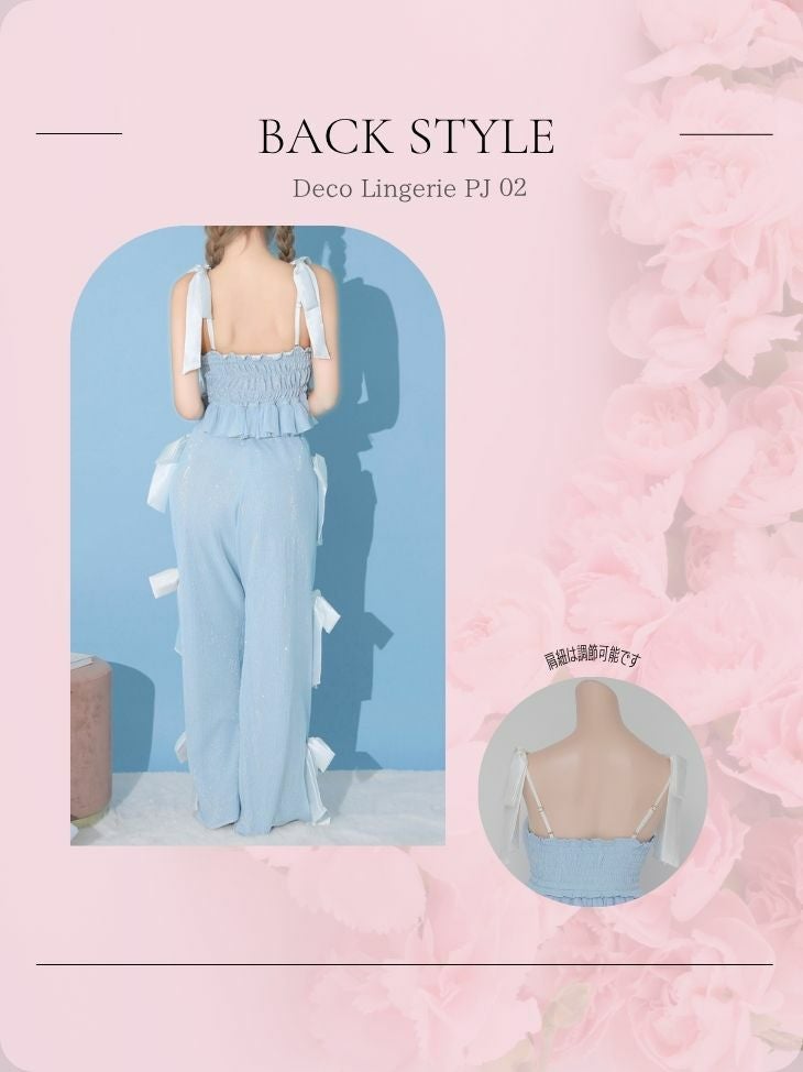 3. [DecoLingerie/デコランジェリー] [ルームウェア] 高級 フリル キャミソール ラメ ビッグリボン ルームウェア 2点セット[キャミソール/ボトム]