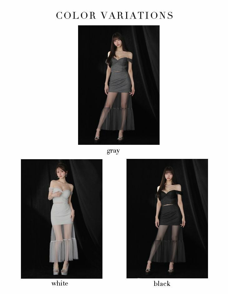 透ける足元に視線釘付け♡ [ROBEdeFLEURSGlossy/ローブドフルールグロッシー] 高級 ブランド Aラインロングドレス 谷間 オフショルダー セットアップ チュール切替 ラメニット