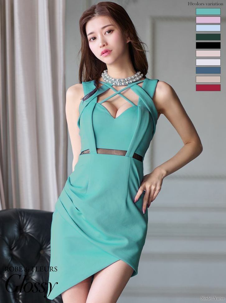 4. [ROBEdeFLEURSGlossy/ローブドフルールグロッシー] 高級バストクロスノースリーブタイトミニドレス