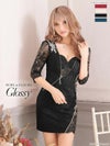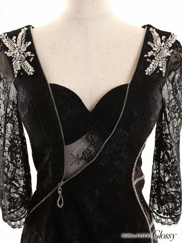 バストチュールがSEXYインパクト☆ [ROBEdeFLEURSGlossy/ローブドフルールグロッシー] 高級ジッパーデザインレース袖ありタイトミニドレス