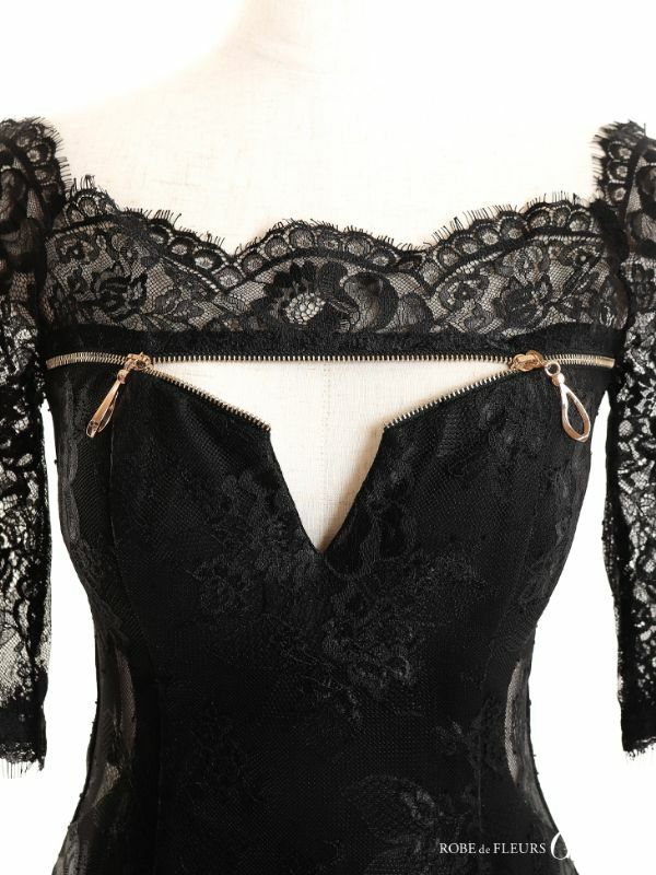 5. [ROBEdeFLEURSGlossy/ローブドフルールグロッシー] 高級オフショルフロントジッパー袖ありタイトミニドレス