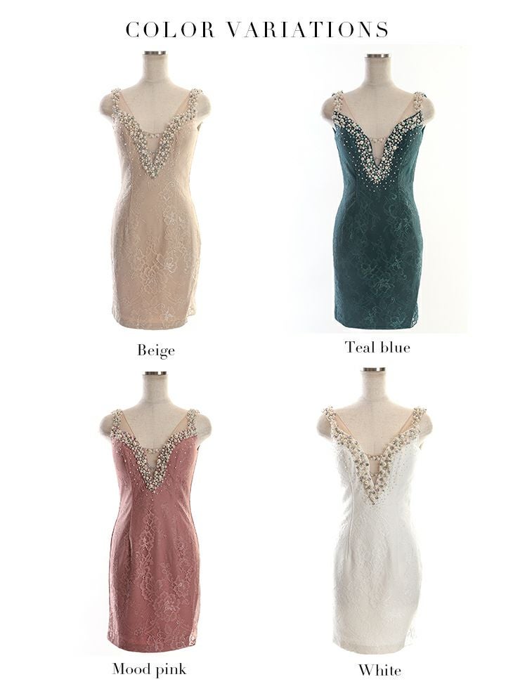 5. [ROBEdeFLEURSGlossy/ローブドフルールグロッシー] 高級ノースリーブパールビジュー付きバストチュール切替総レースタイトミニドレス