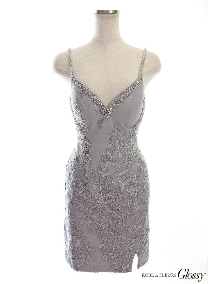 ROBEdeFLEURSGlossy ローブドフルールグロッシー 高級刺繍レースxビジューキャミソールくびれタイトミニドレス