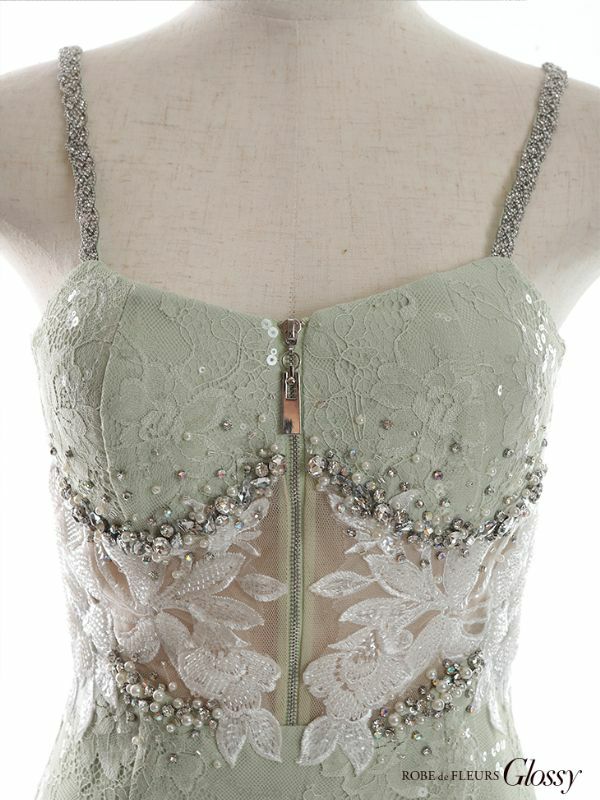 4. [ROBEdeFLEURSGlossy/ローブドフルールグロッシー] 高級ビジュー付きウエストフラワーチュールジップデザインキャミソールタイトミニドレス