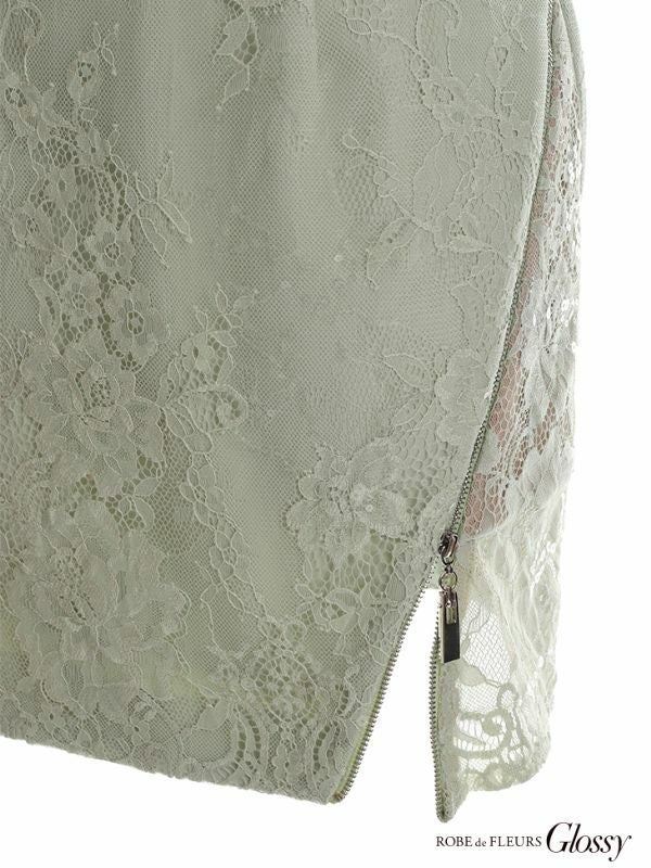 5. [ROBEdeFLEURSGlossy/ローブドフルールグロッシー] 高級ビジュー付きウエストフラワーチュールジップデザインキャミソールタイトミニドレス