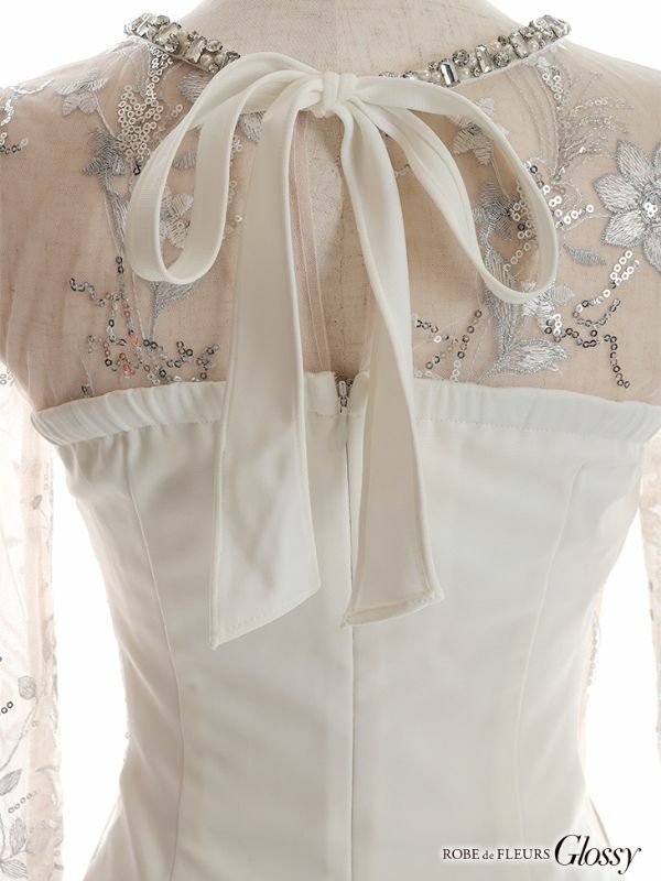ROBEdeFLEURSGlossy ローブドフルールグロッシー 高級バストカット長袖フラワー刺繍レースウエストチュール切替タイトミニドレス