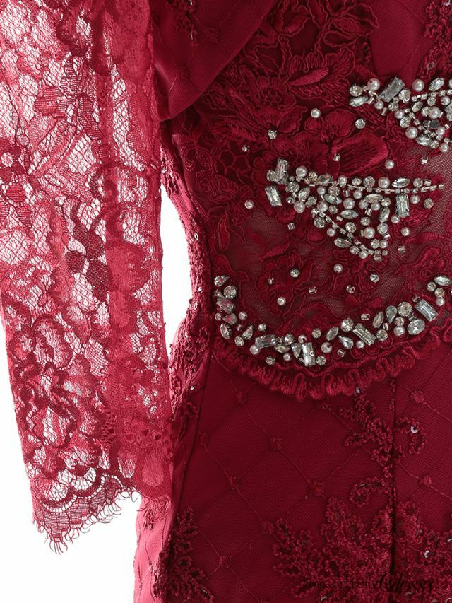 バストデザインで周囲と差をつける☆ [ROBEdeFLEURSGlossy/ローブドフルールグロッシー] 高級 バストカット ジップ ウエストシースルー ビジューレース 袖あり 谷間魅せ タイトミニドレス