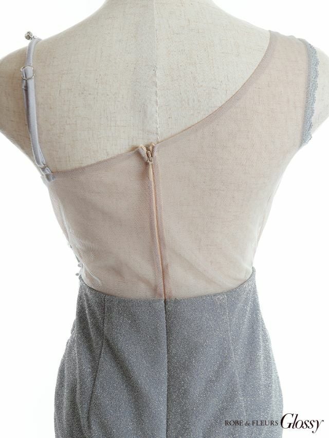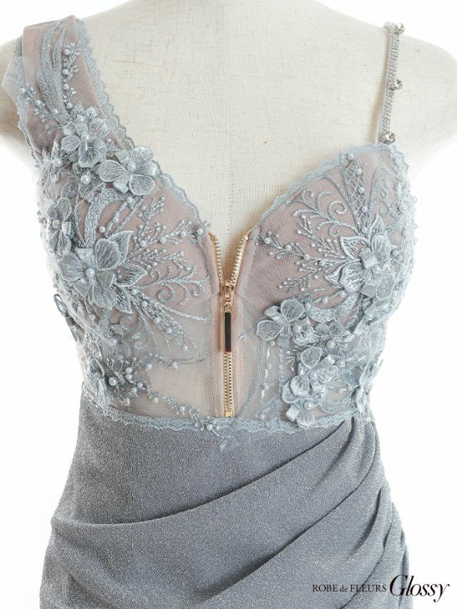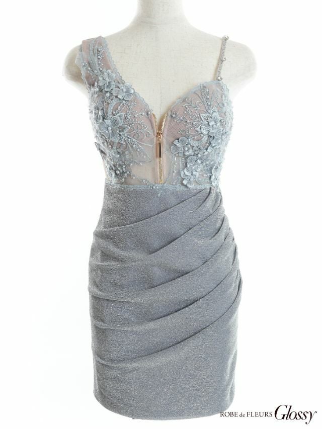 4. [ROBEdeFLEURSGlossy/ローブドフルールグロッシー] 高級フラワーレースジッパーキャミソールタイトミニドレス