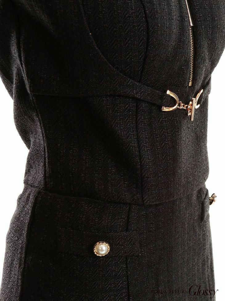 ROBEdeFLEURSGlossy ローブドフルールグロッシー 高級ワンカラーツイードセットアップフロントジップシアーカットノースリーブタイトミニドレス