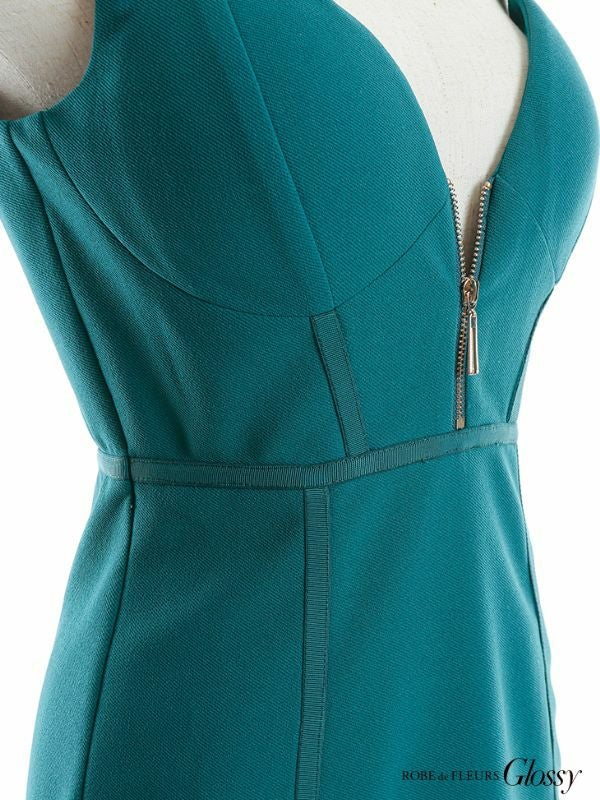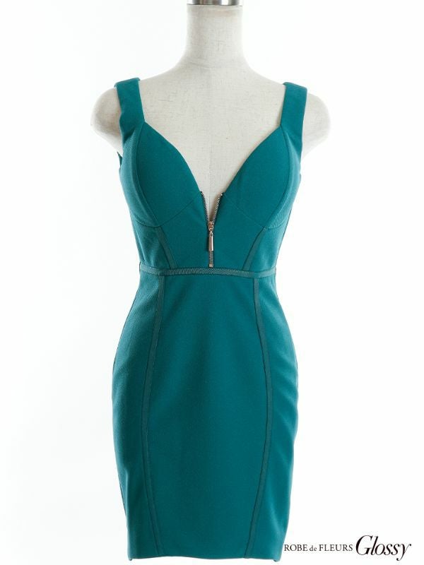 5. [ROBEdeFLEURSGlossy/ローブドフルールグロッシー] 高級ワンカラーパイピングフロントジップノースリーブタイトミニドレス
