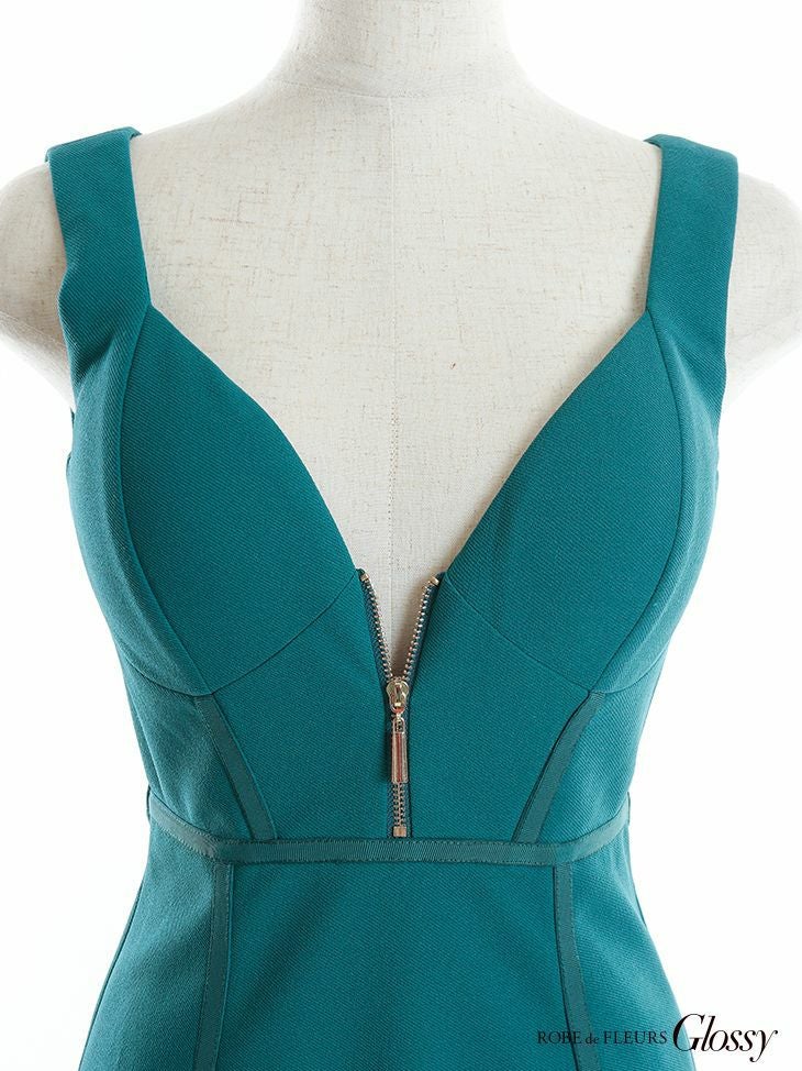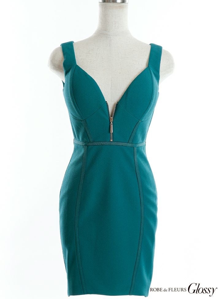 胸元のジッパーがセクシー☆ [ROBEdeFLEURSGlossy/ローブドフルールグロッシー] 高級ワンカラーパイピングフロントジップノースリーブタイトミニドレス