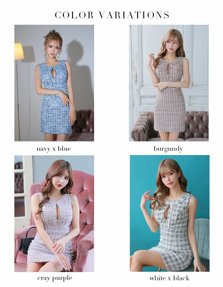 4. [ROBEdeFLEURSGlossy/ローブドフルールグロッシー] 高級フロントジッパーツイードノースリーブタイトミニドレス