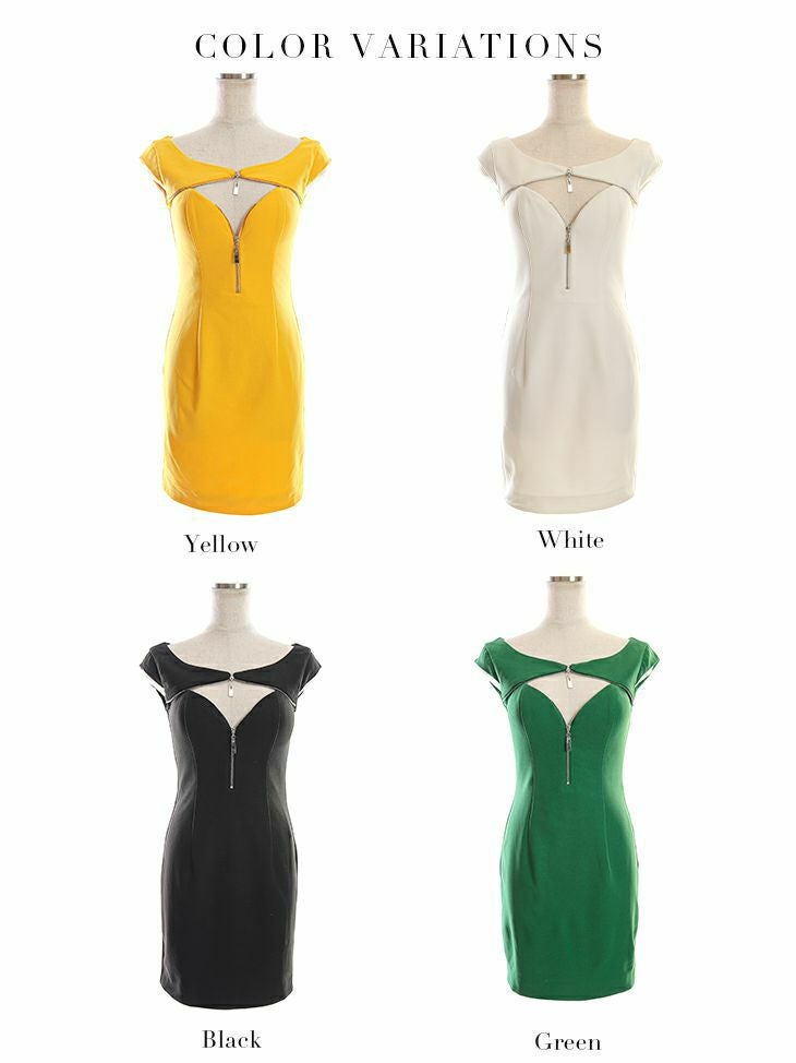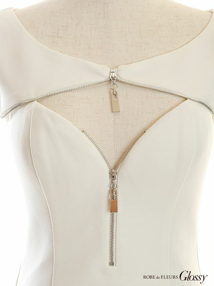 4. [ROBEdeFLEURSGlossy/ローブドフルールグロッシー] 高級フロントジッパー×ストレッチノースリーブタイトミニドレス