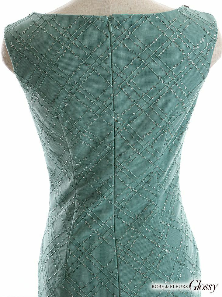 5. [ROBEdeFLEURSGlossy/ローブドフルールグロッシー] 高級ワンカラーバストカッティングビジュー縁取りスパンコールレースノースリーブタイトミニドレス