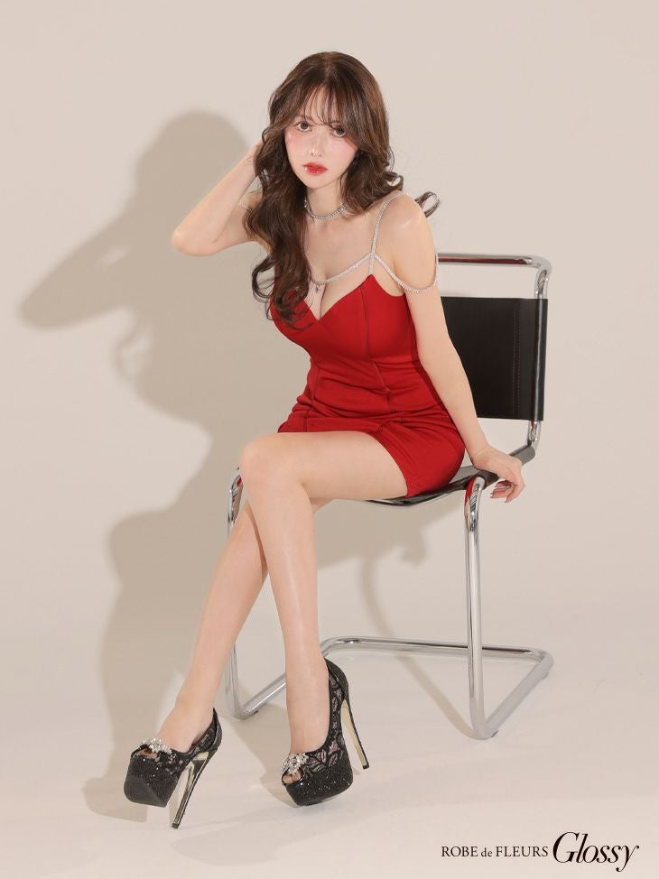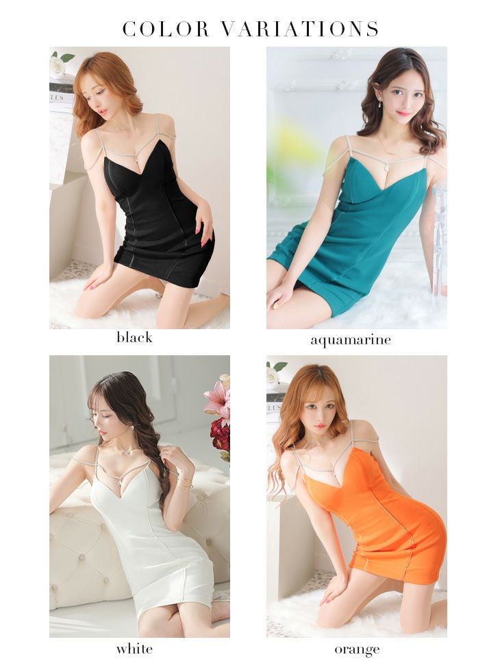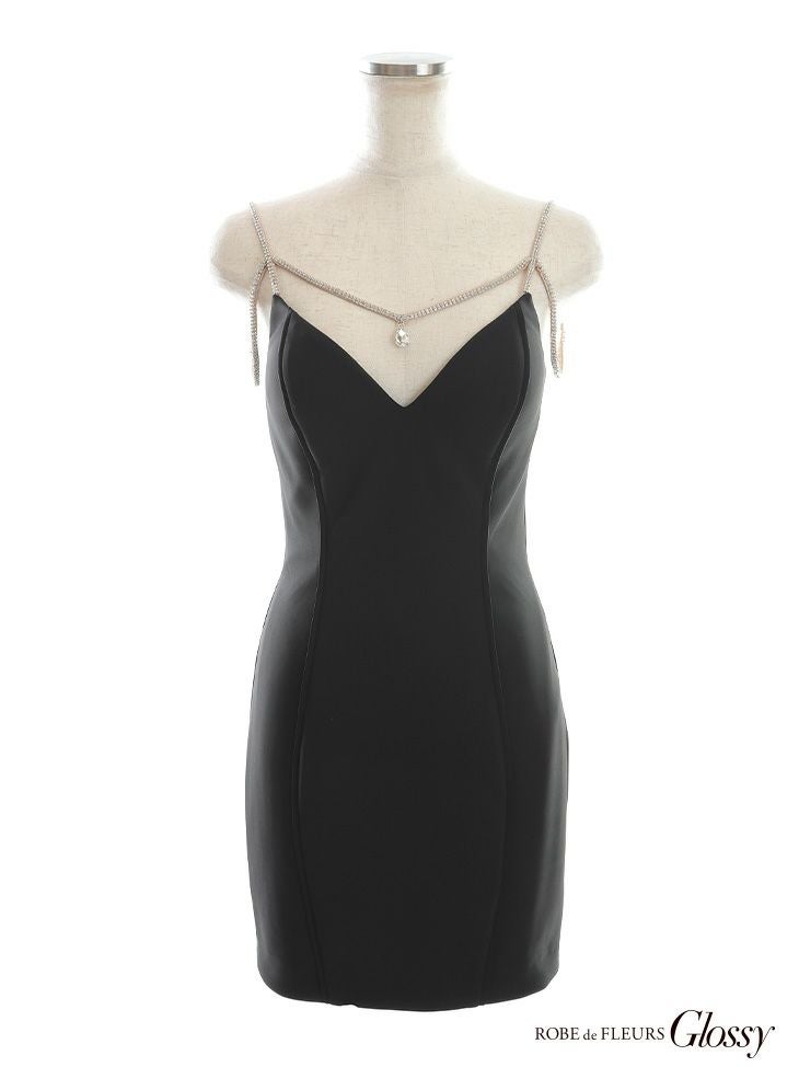 5. [ROBEdeFLEURSGlossy/ローブドフルールグロッシー] 高級キャミソールビジューワンカラーストレッチタイトミニドレス (伊藤舞雪着用)