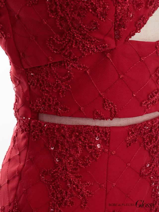 ROBEdeFLEURSGlossy ローブドフルールグロッシー 高級フロントジップアンダーバストカットスパンコール刺繍アメリカンスリーブタイトミニドレス