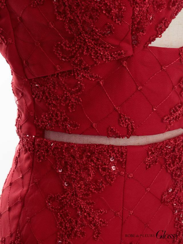 ROBEdeFLEURSGlossy ローブドフルールグロッシー 高級フロントジップアンダーバストカットスパンコール刺繍アメリカンスリーブタイトミニドレス