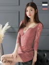 総レースで大人っぽさ抜群☆ [ROBEdeFLEURSGlossy/ローブドフルールグロッシー] 高級 総レース バストシースルー ビジュー 袖あり 谷間魅せ タイトミニドレス