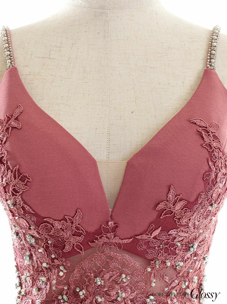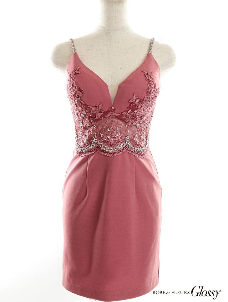 Glossyらしい大胆なドレス♡ SALE [ROBEdeFLEURSGlossy/ローブドフルールグロッシー] 高級ウエスト刺繍レースビジューキャミソールタイトミニドレス