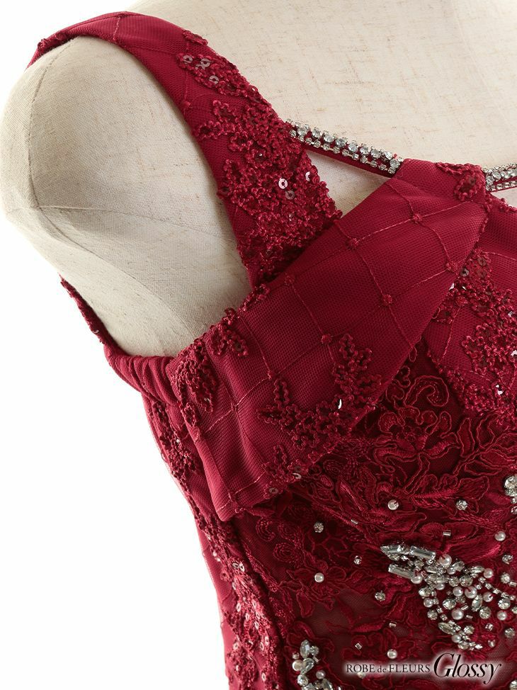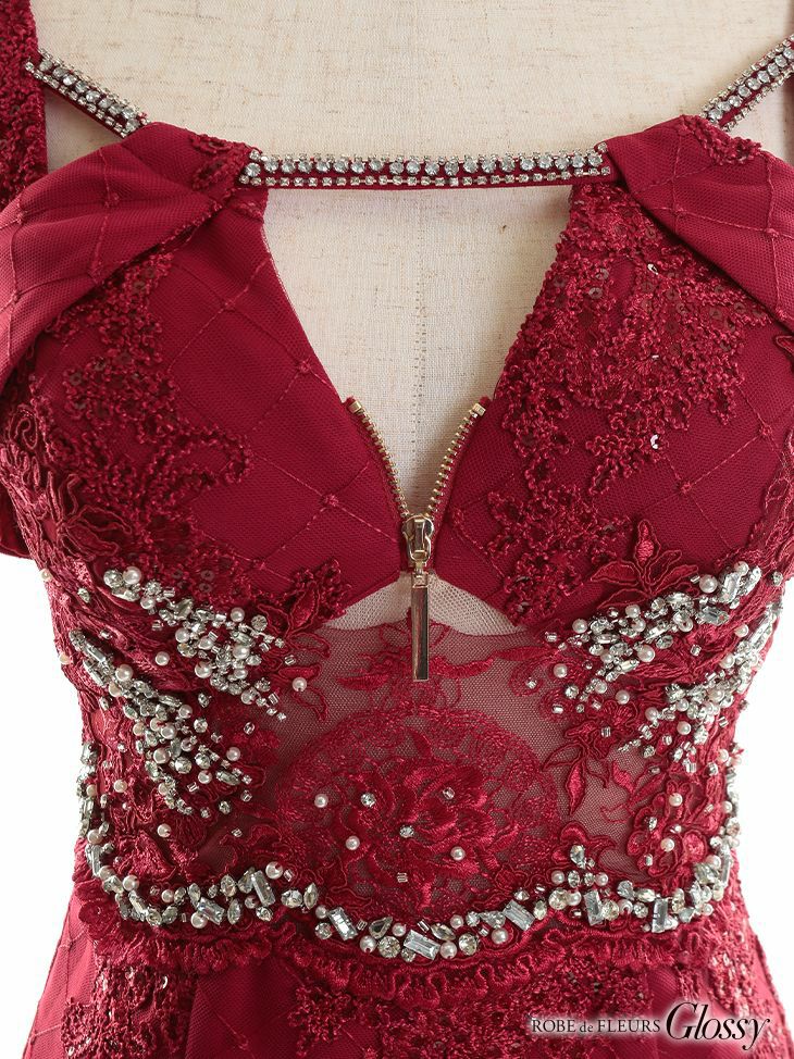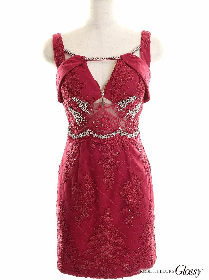 5. [ROBEdeFLEURSGlossy/ローブドフルールグロッシー] 高級スパンコール刺繍デコルテビジューバストジップウエストチュールレースノースリーブタイトミニドレス