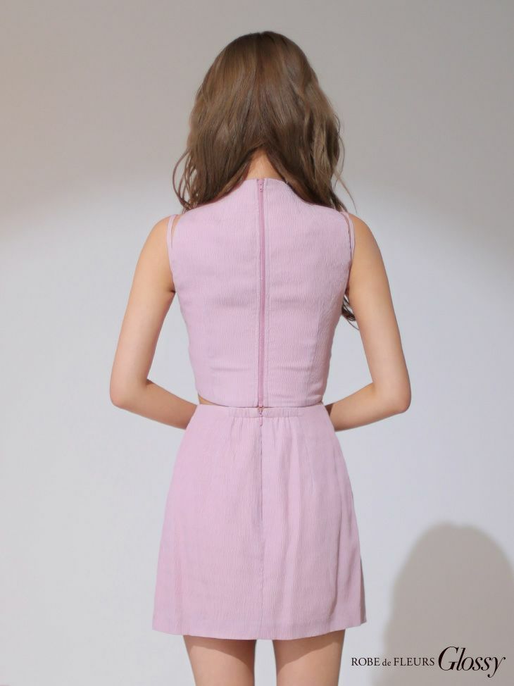 4. [ROBEdeFLEURSGlossy/ローブドフルールグロッシー] 高級マルチファスナーハイネックノースリーブセットアップタイトミニドレス