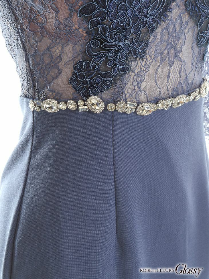 ウエストのチュールレースがセクシー◎ SALE [ROBEdeFLEURSGlossy/ローブドフルールグロッシー] 高級ビジューチョーカーバックリボンレースホルターネック肩出し 二の腕カバースリーブウエスト切替袖ありタイトミニドレス