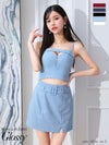 6. SUPER SALE [ROBEdeFLEURSGlossy/ローブドフルールグロッシー] 高級 バストカット ジップ ワンカラー ウエストベルト セットアップ 2way キャミソール 谷間魅せ タイトミニドレス
