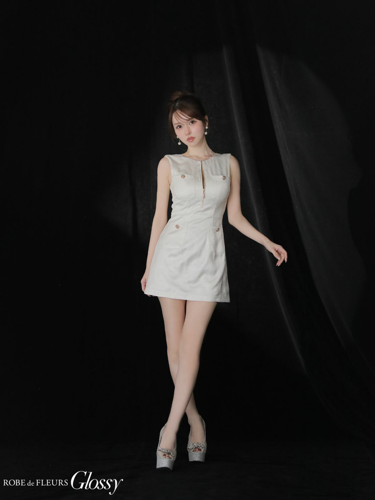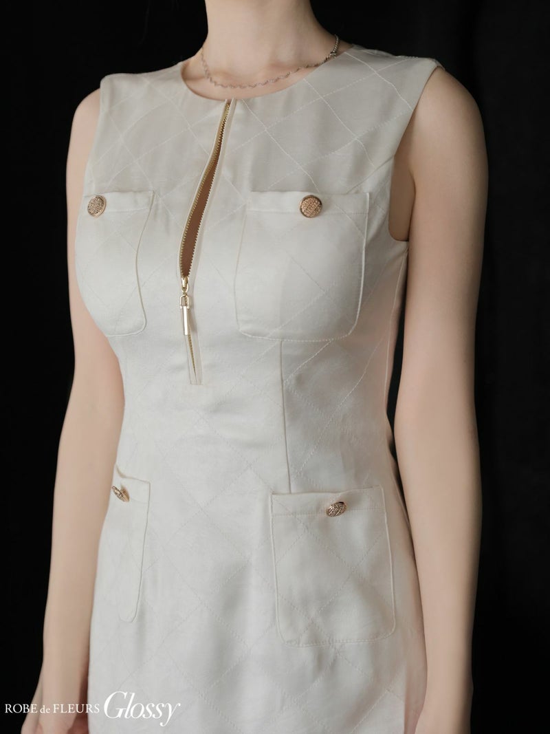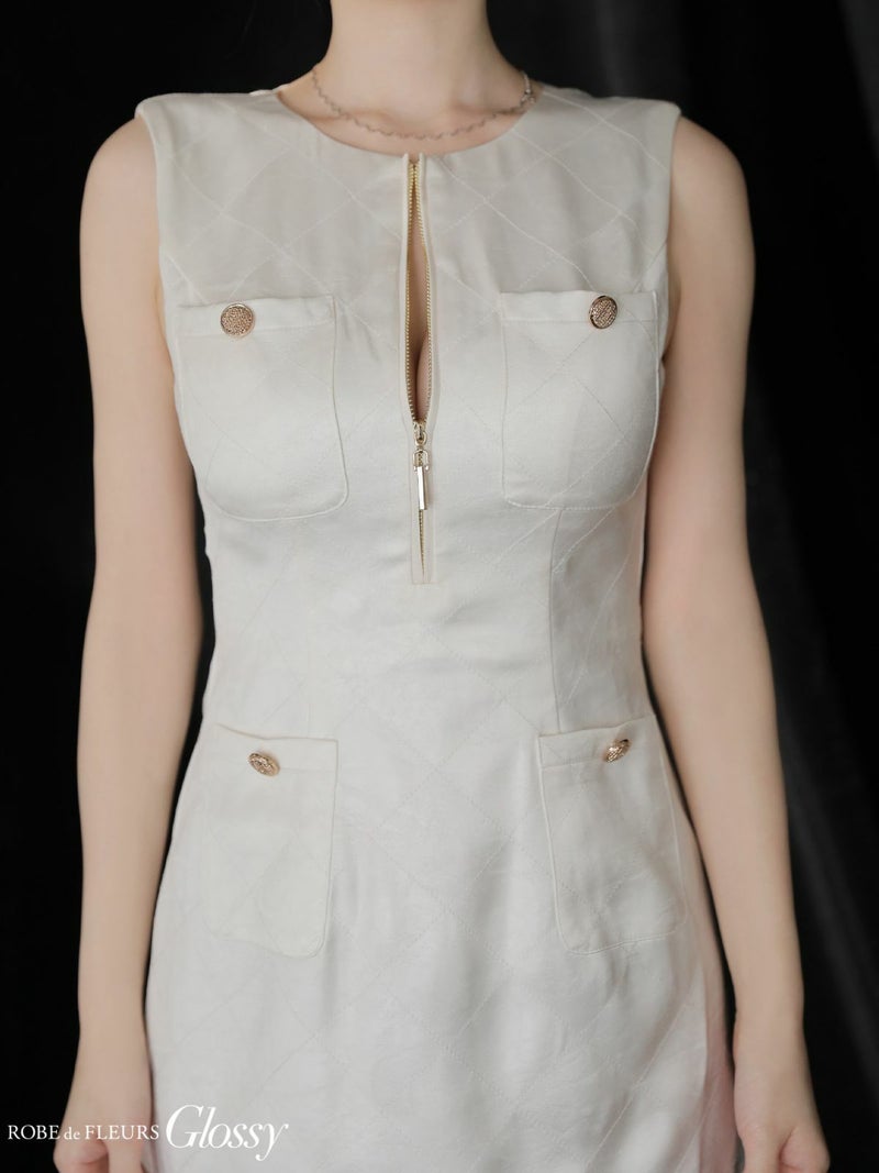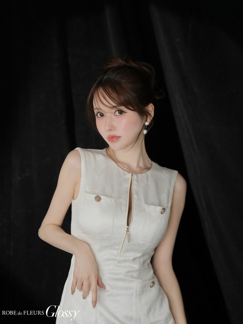 煌めくジップがアクセント♡ [ROBEdeFLEURSGlossy/ローブドフルールグロッシー] 高級 ブランド タイトミニドレス 谷間 ノースリーブ ジップ レザー 大人 ポケットデザイン