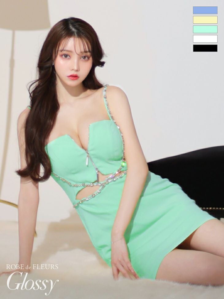 キャバドレス ミニドレス [ROBEdeFLEURSGlossy/ローブドフルールグロッシー] 高級キャミソールウエストカットジップタイトミニドレス