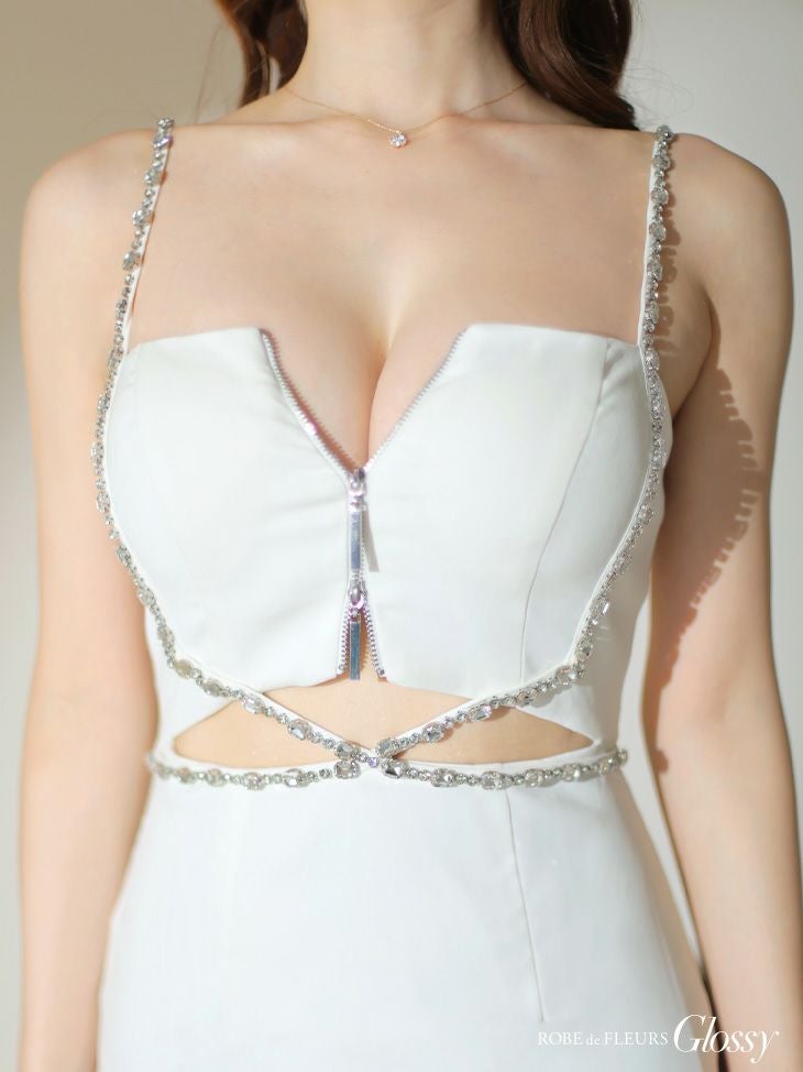 4. [ROBEdeFLEURSGlossy/ローブドフルールグロッシー] 高級キャミソールウエストカットジップタイトミニドレス