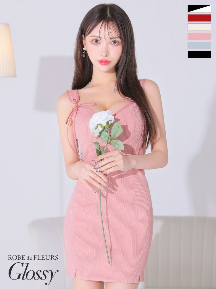 5. [ROBEdeFLEURSGlossy/ローブドフルールグロッシー] 高級ノースリーブダブルリボンワンカラータイトミニドレス