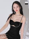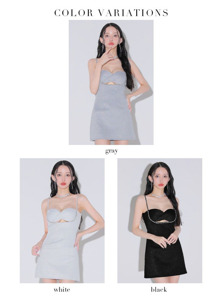 5. [ROBEdeFLEURSGlossy/ローブドフルールグロッシー] 高級ビジュー縁取りバストツイストラメキャミソールタイトミニドレス