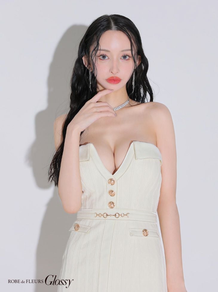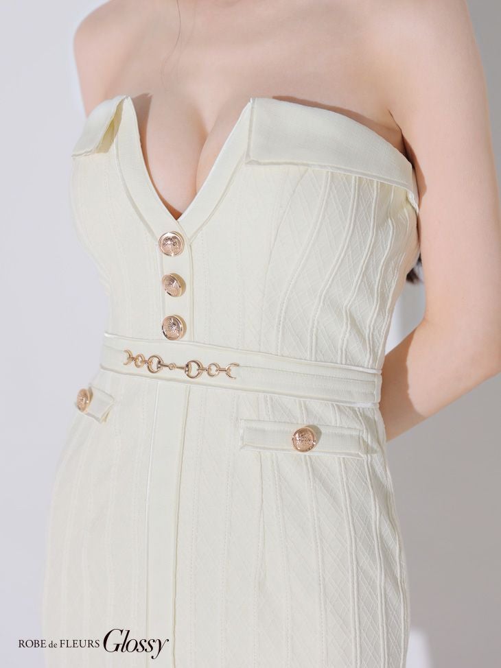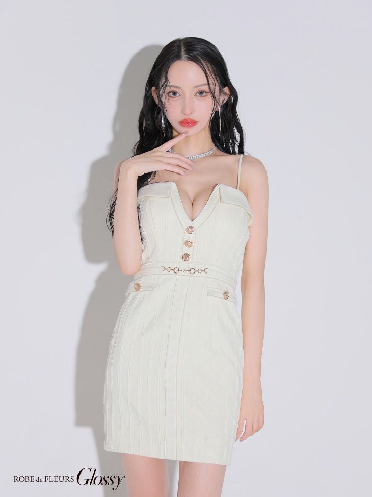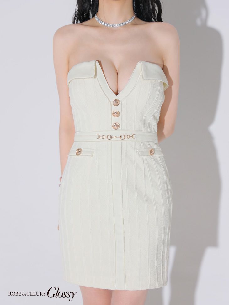 5. [ROBEdeFLEURSGlossy/ローブドフルールグロッシー] 高級 2way キャミソール バストカット ツイード ウエストベルト 谷間魅せ タイトミニドレス