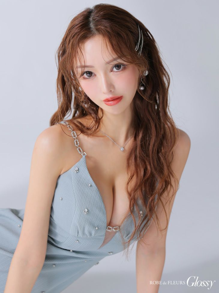 身に纏うだけで色気溢れる☆ [ROBEdeFLEURSGlossy/ローブドフルールグロッシー] 高級 ワンカラー ビジュー リブニット バストシースルー キャミソール 谷間魅せ タイトミニドレス