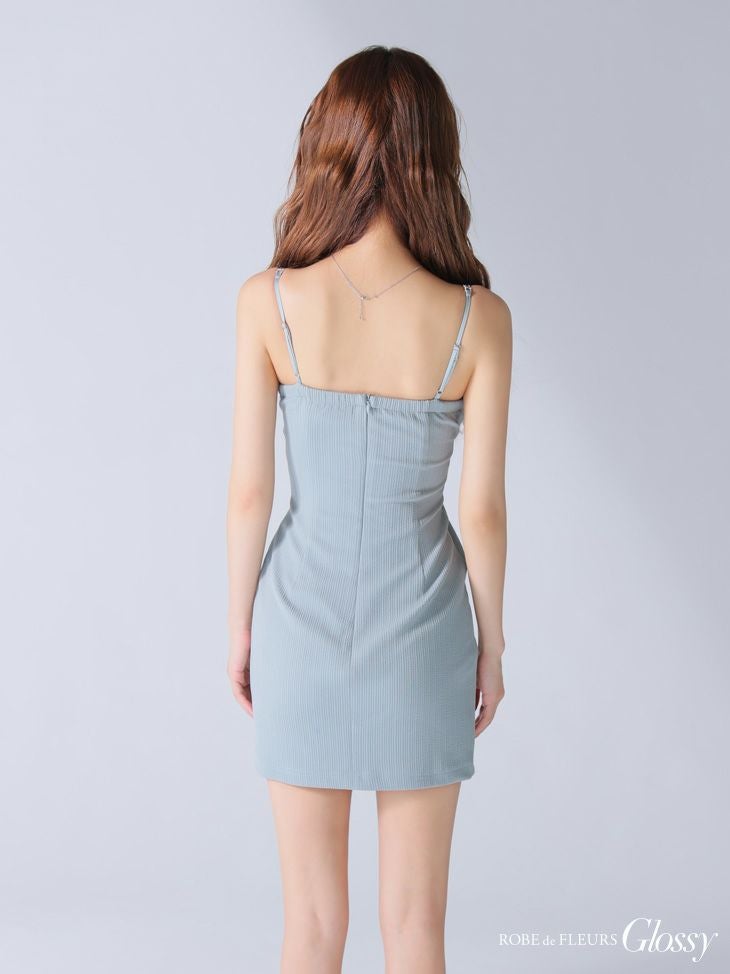 5. [ROBEdeFLEURSGlossy/ローブドフルールグロッシー] 高級 ワンカラー ビジュー リブニット バストシースルー キャミソール 谷間魅せ タイトミニドレス