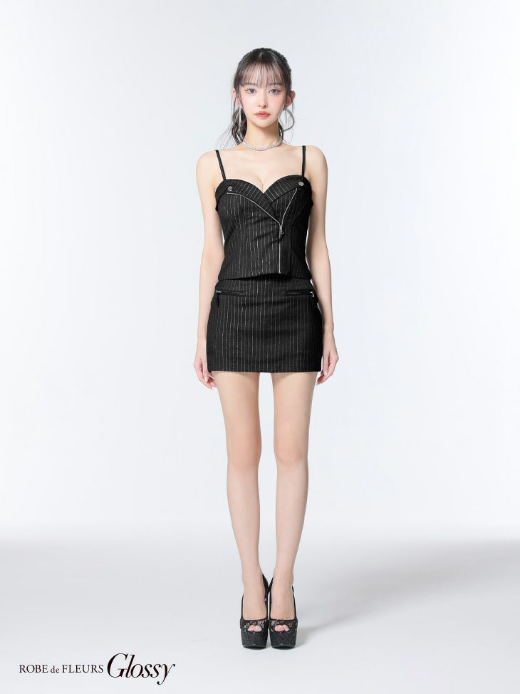 ストライプが大人っぽさを引き立てる♡ [ROBEdeFLEURSGlossy/ローブドフルールグロッシー] 高級 ハートカット キャミソール ジップ セットアップ ストライプ柄 タイトミニドレス