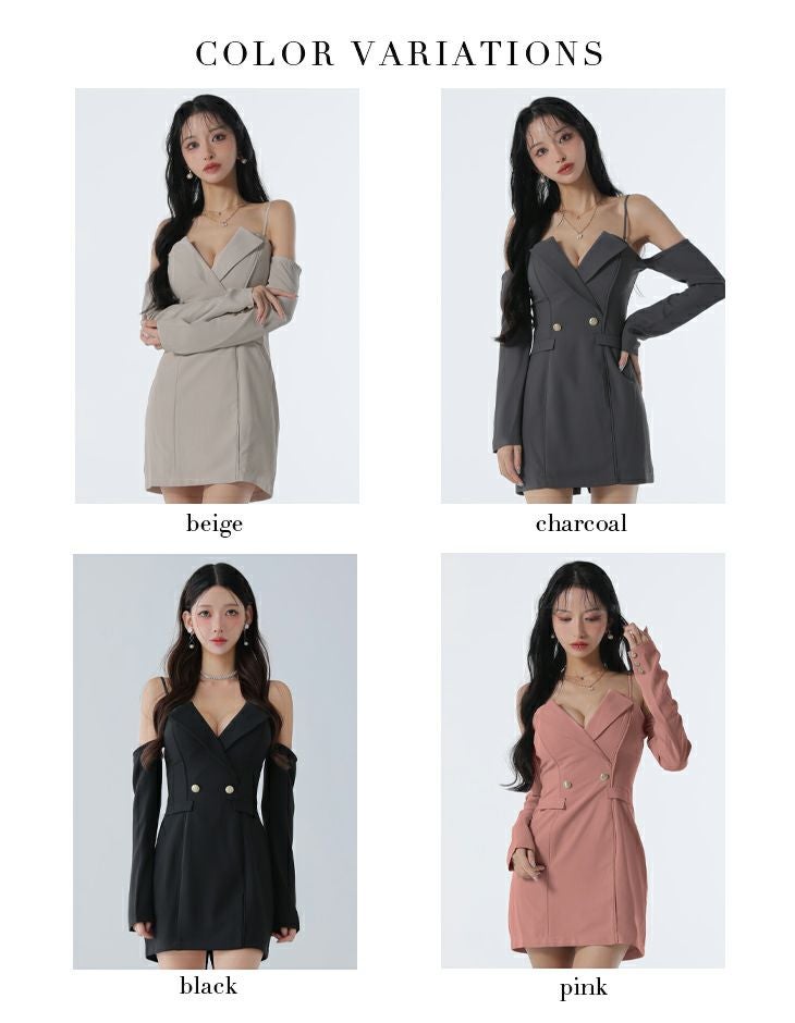 5. [ROBEdeFLEURSGlossy/ローブドフルールグロッシー] 高級 肩出し 二の腕カバー 2way 長袖 袖あり テーラード風デザイン 谷間魅せ タイトミニドレス