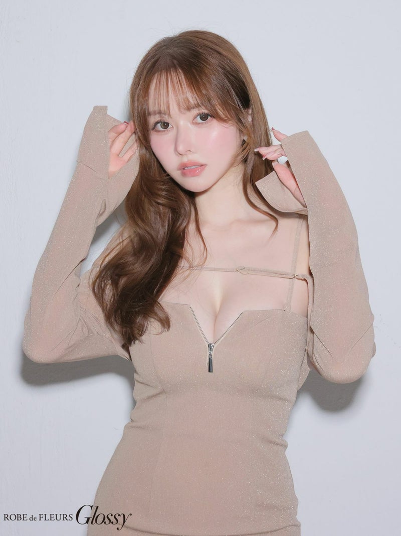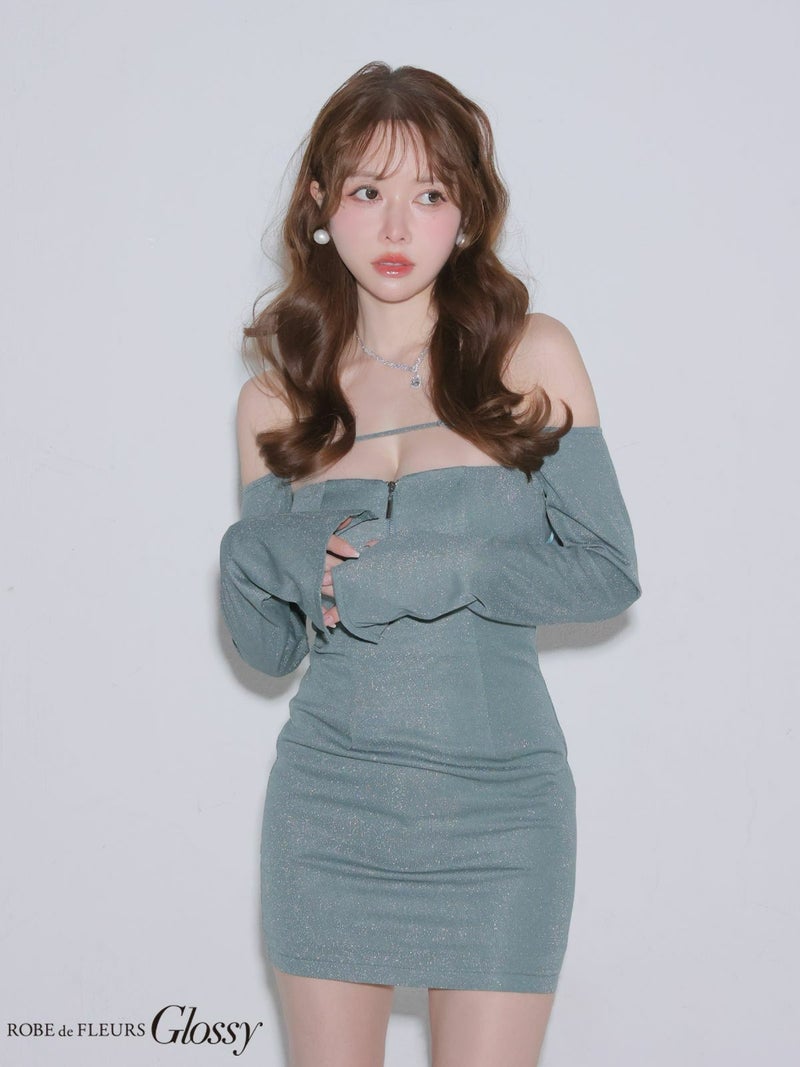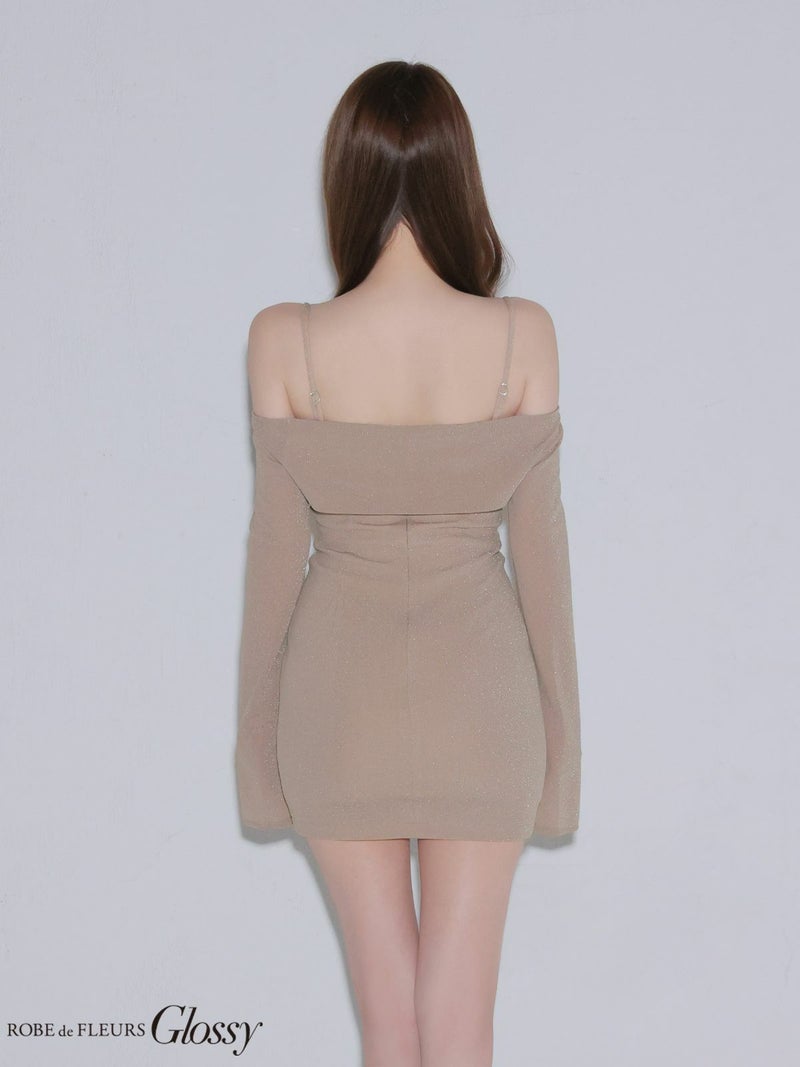 ラメニットが華やぐ1着♡ [ROBEdeFLEURSGlossy/ローブドフルールグロッシー] 高級 ブランド タイトミニドレス 谷間 長袖 ボレロ キャミソール 3way ジップ ラメニット