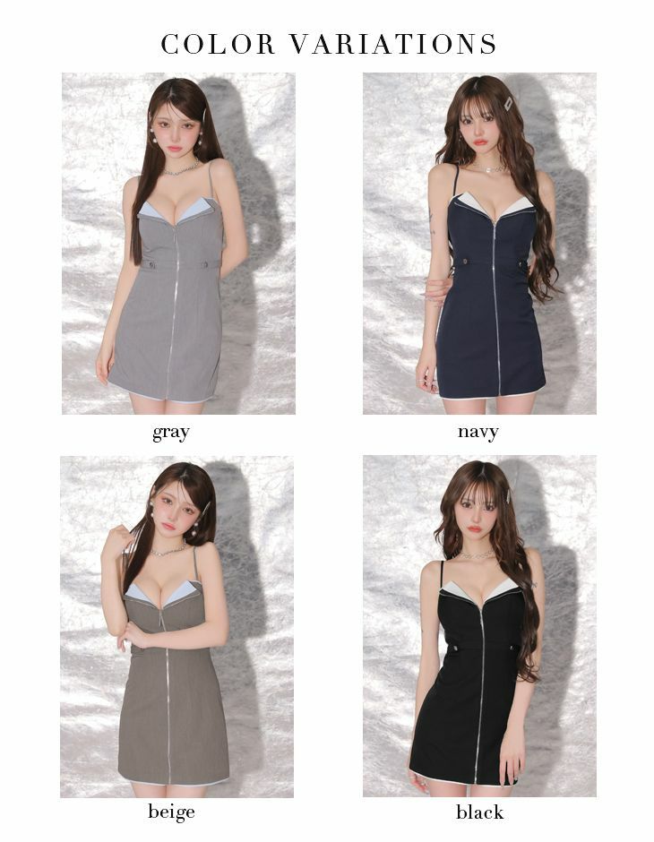4. ジップデザイン高級ミニドレス