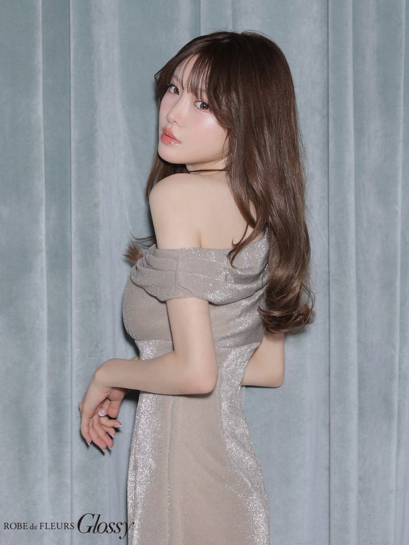 シンプルながらもラメが煌めく♡ [ROBEdeFLEURSGlossy/ローブドフルールグロッシー] 高級 ブランド タイトミニドレス ワンショルダー ラメ ドレープ ワンカラー