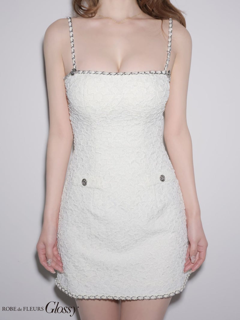 着るだけで美シルエットを演出♡ [ROBEdeFLEURSGlossy/ローブドフルールグロッシー] 高級 ブランド タイトミニドレス チェーンキャミソール ジャガード ボタン