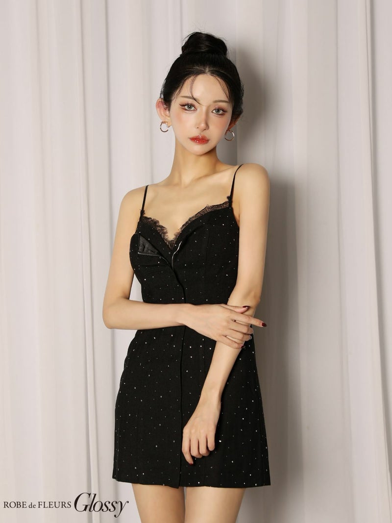5. 予約商品【6月下旬入荷予定】[ROBEdeFLEURSGlossy/ローブドフルールグロッシー] 高級 ブランド タイトミニドレス 谷間 キャミソール 胸元レース ビジュー