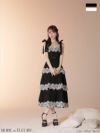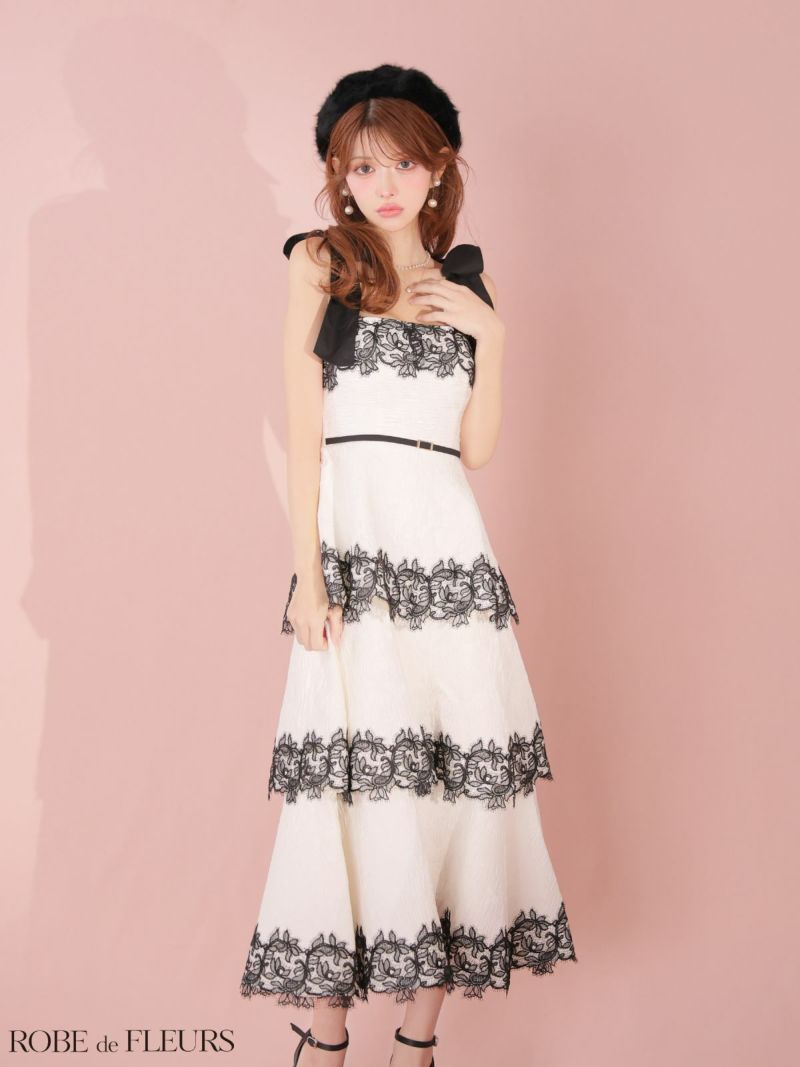 4. [ROBEdeFLEURS/ローブドフルール] 高級 ブランド Aラインロングドレス キャミソール ショルダーリボン ウエストベルト ティアード レース