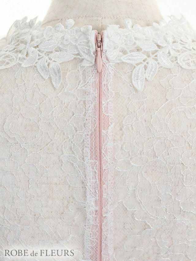 4. [ROBEdeFLEURS/ローブドフルール] 高級首元リボンフリル袖総レースフレアミニドレス